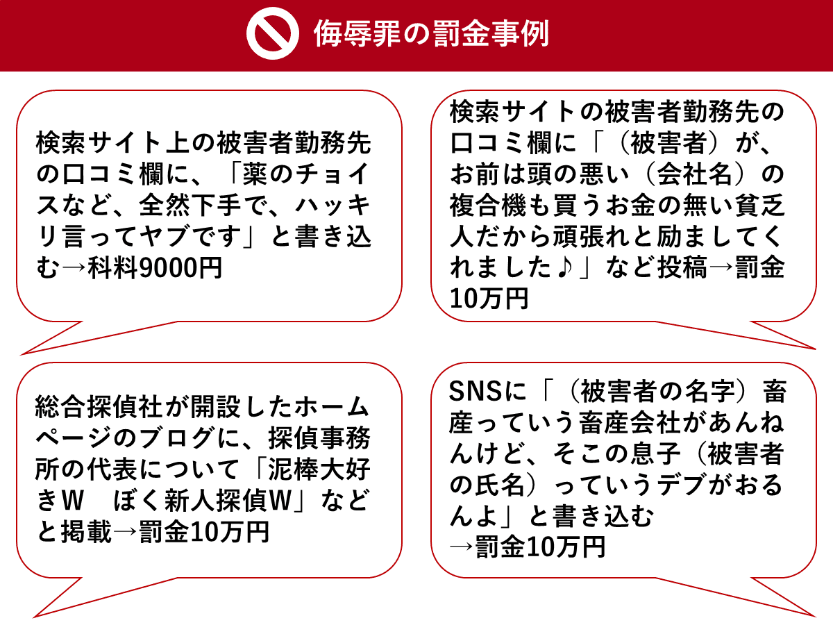 事例集に見る「侮辱罪」の罰則の具体例
