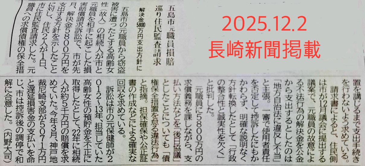 •2025年12月1日付で住民監査請求を提出し、同日付で長崎新聞にもこの件が報じられました。