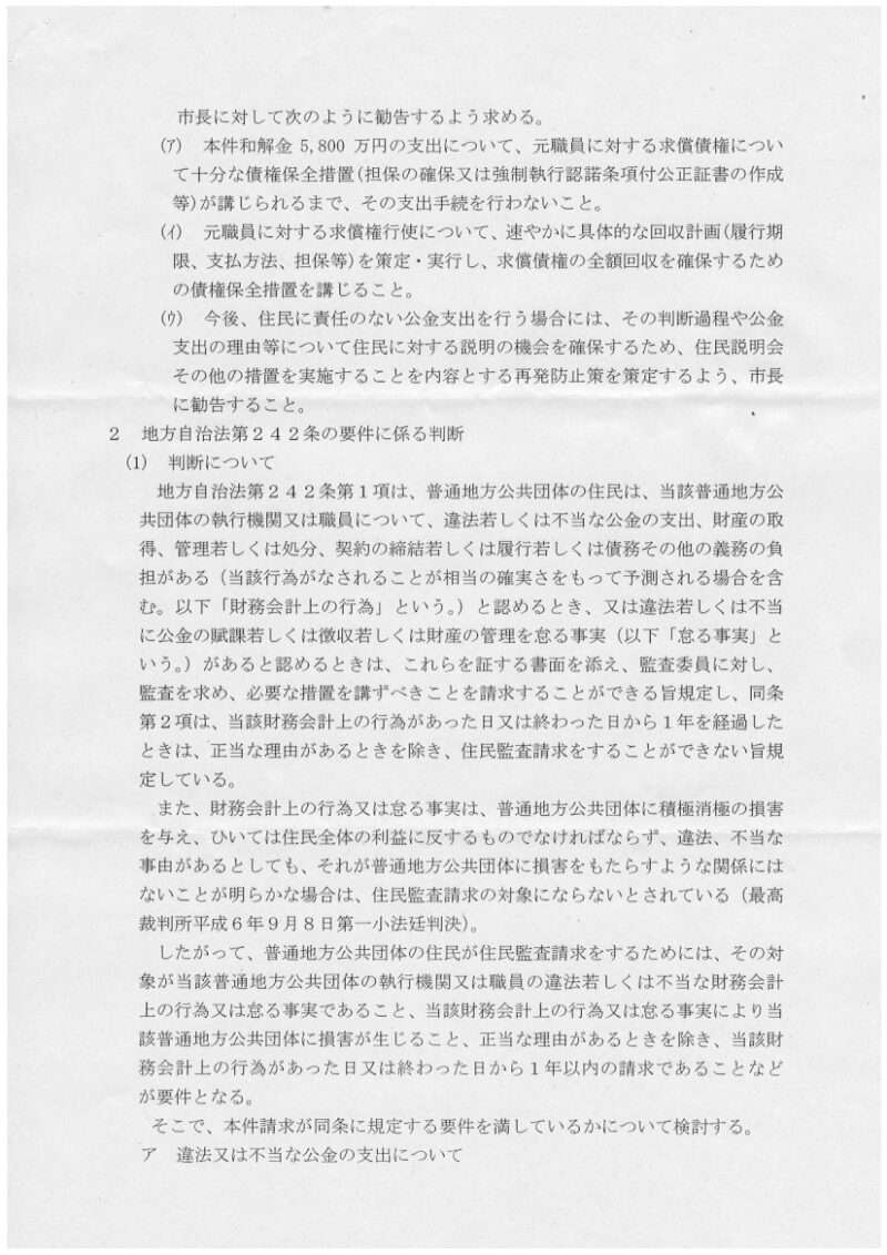 つまり、監査委員は「不当ではない」と言ったのではなく、「訴えるのが早すぎる」と言って門前払いをしたのです。