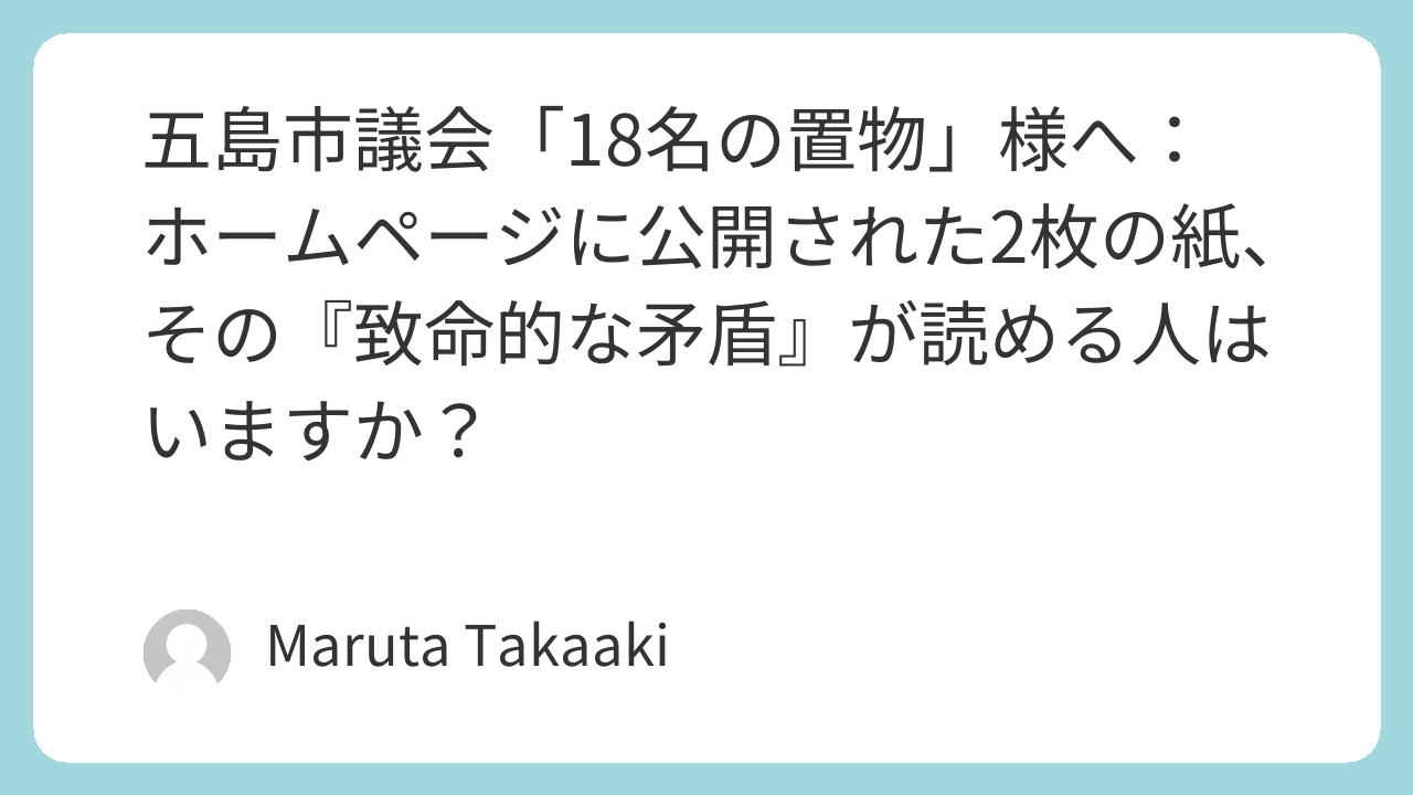 五島市議会「18名の置物」様へ:ホームページに公開された2枚の紙、その『致命的な矛盾』が読める人はいますか?